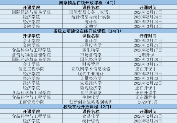 疫情防控期间,我校将通过“爱课堂中国大学MOOC”平台,免费向社会公众开放20门精品在线开放课程,助力全国高校学子和社会大众共同打赢这场战“疫”。此次推出的课程汇聚了我校各优势学科专业的力量,由各个国家级、省级一流专业的教师团队精心打造,内容涉及经济学、统计学、金融学、国家经济与贸易、会计学、审计学、工商管理、食品科学与工程等多个专业的核心课程。本次开设的课程分别为: