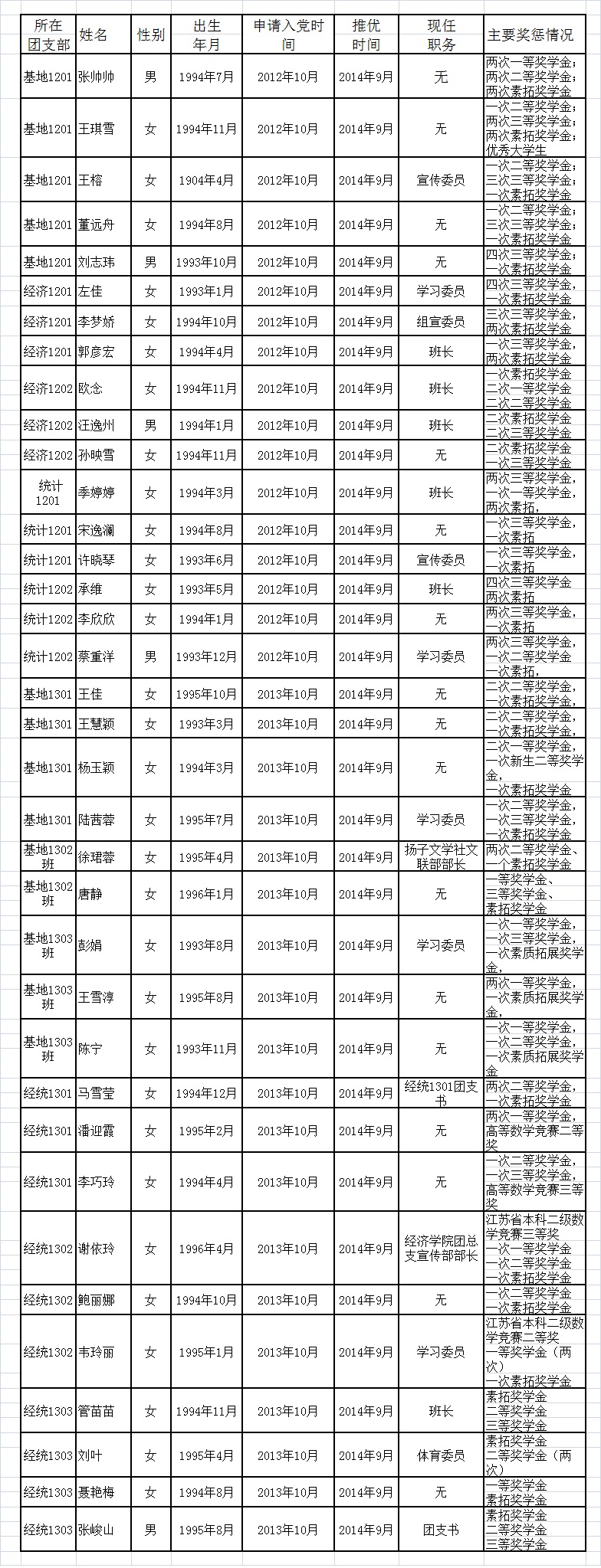 以上同学为团组织向党组织推荐的党的发展对象人选。为了广泛听取群众意见,接受群众的监督,现予以公示,公示时间为7天,有情况可在公示期内向学院团总支(分团委)反映。联系电话:84028259。