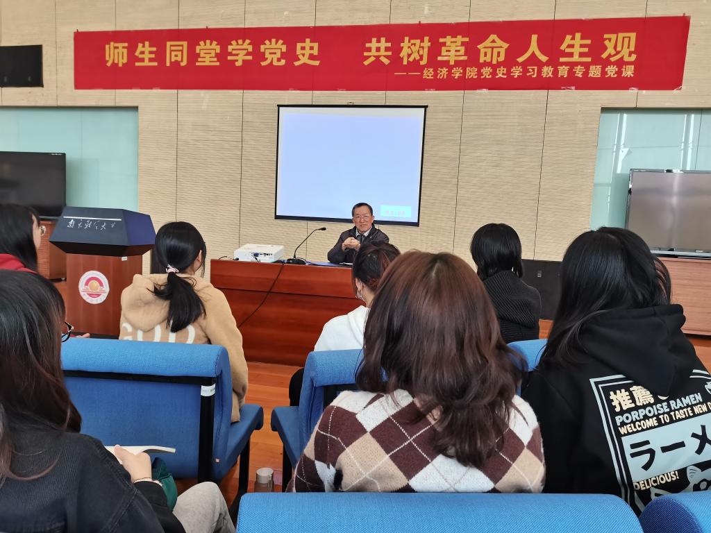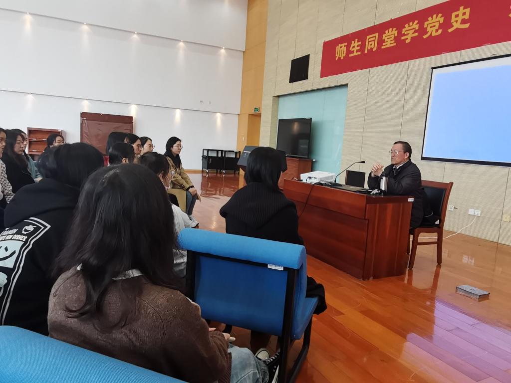 何干强教授以“师生同堂学党史,共树革命人生观”为主题讲授党课