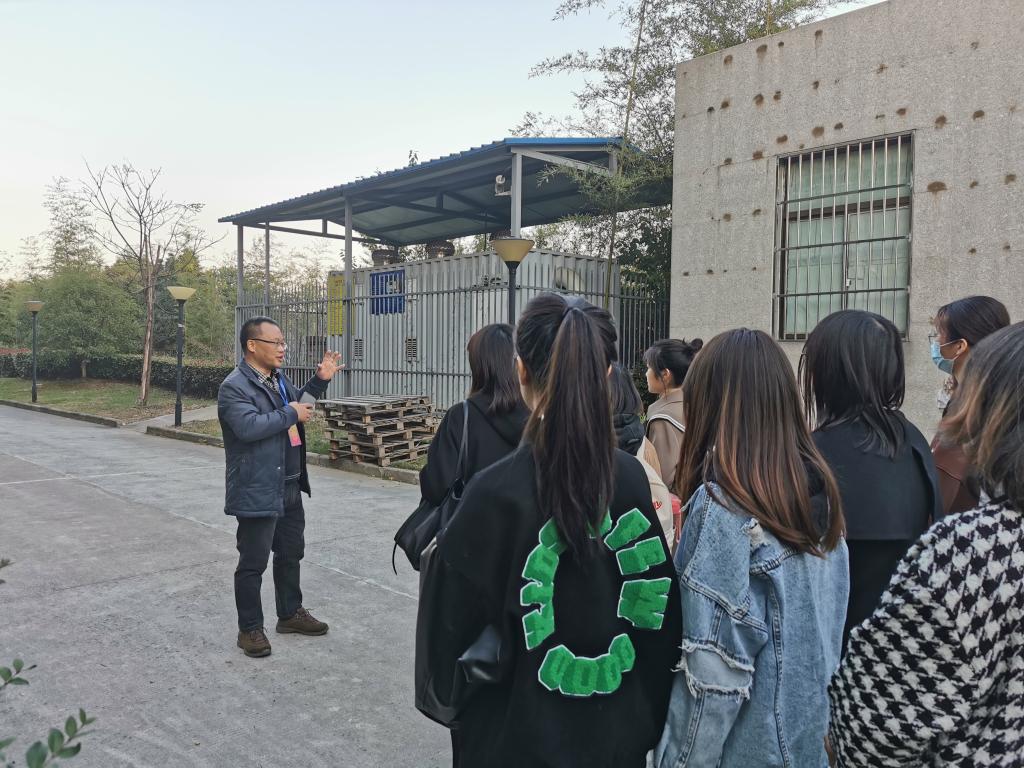 第一站是工科楼。由于食工学院每天有化学实验残余试剂形成废水、过程废气排放,因此加强监管极为重要。针对这两个方面的问题,学校采取的主要措施为废气的净化、废水的酸碱中和以及废液残留的一体化独立储存,将工科楼实验安全隐患降到最低。陆处长还为大家科普了“氨氮指标”,污水处理厂处理氨氮指标要达50以上,河道接受氨氮指标为2以下”。同学们纷纷表示学到了很多课本上没有学到的知识,拓宽了知识视野。