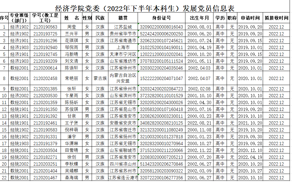 根据《发展党员工作实施细则》有关规定,经学院基层党支部考察、学院党委预审,拟接收周莹等22名本科生人为中共预备党员。现予以公示: