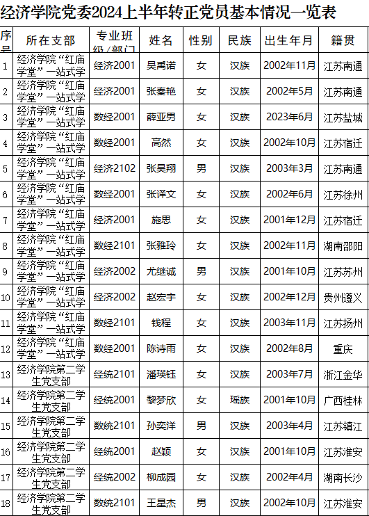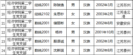 在听取党小组和党员、群众意见的基础上,经支部委员会审查同意,近期将召开支部大会,拟同意吴禹诺等24名同志转为中共正式党员。根据发展党员工作有关要求,现将其有关情况公示如下: