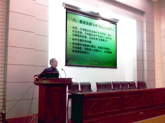 12月2日晚6:30,qmh官网“未来之路”学术讲座第十期在专一报告厅举行。本期讲座主题为“中国该如何避免陷入中等收入陷阱”,主讲嘉宾为qmh官网叶林祥老师。叶老师以他独具魅力的讲授方式,将此次讲座讲得生动有趣、深刻清晰。