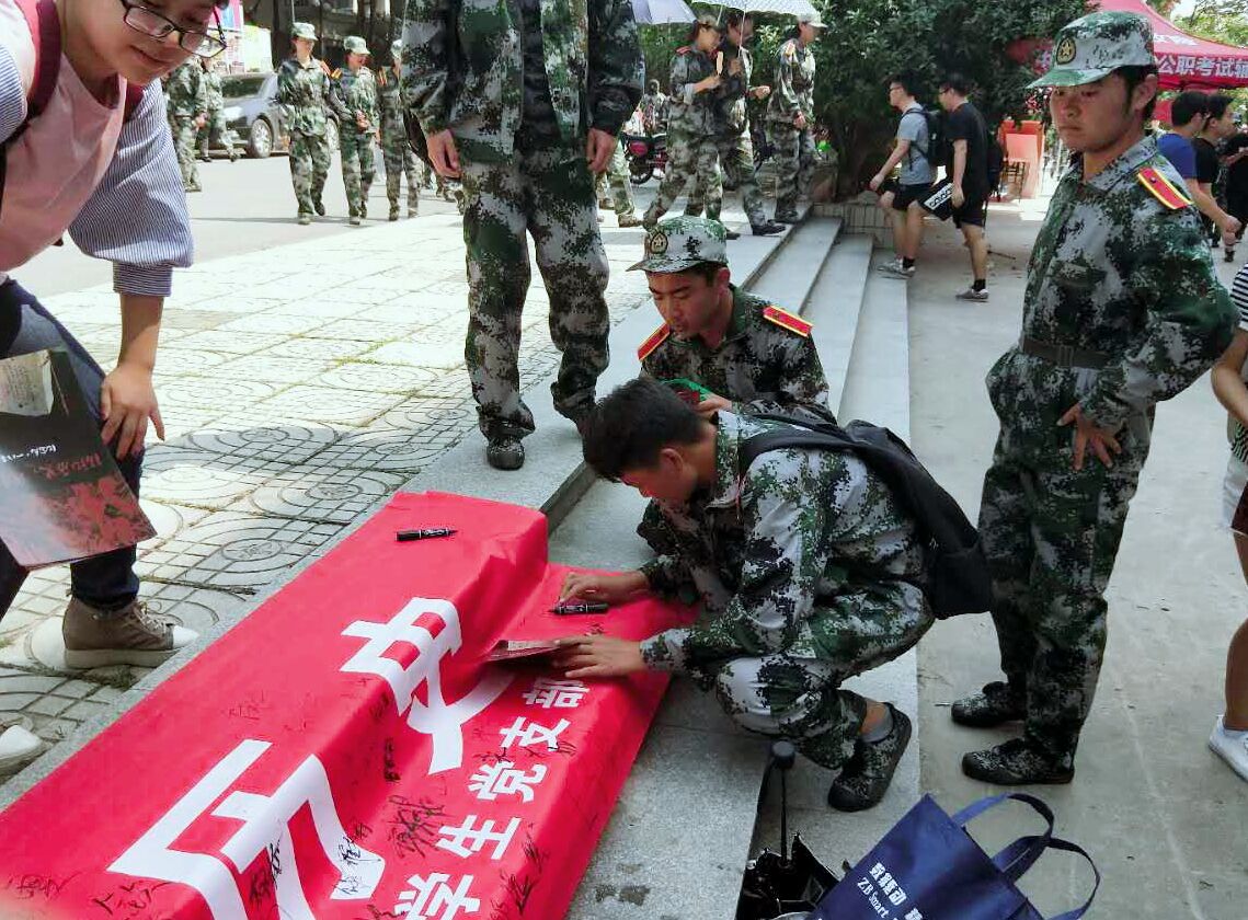 上午十一时许,签名仪式正式开始。qmh官网入党积极分子及学生党员们将印有“珍爱和平 铭记历史”标语的条幅中苑食堂广场处展开,随即引来许多师生驻足签名。师生们纷纷在横幅上肃穆而郑重地签上了自己的名字,表达自己对历史事实的铭记,对和平生活的珍爱。一名刚刚结束军训的陈姓同学签完名后庄重表示:“作为中国人,我将永远记得九一八事变,不忘国耻。作为一名当代大学生,我将为中华之崛起而读书”。