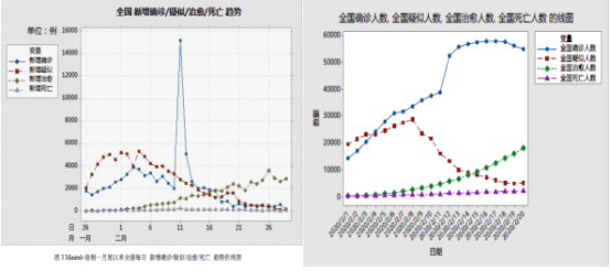 活动中,同学们认真收集资料,查阅数据,绘制图表,分析并预测趋势。有的同学统计一月底以来全国新增确诊、疑似、死亡、治愈人数趋势,指出此次疫情已经由最初的迅猛发展并大范围蔓延,转变为当下的逐渐减弱,并继续向好发展,战疫胜利已经看到了曙光。有的同学分析二月初以来安徽一省现存确诊人数趋势,指出通过政府的有效控制和全省人民的积极配合,安徽省新冠肺炎患者在二月中旬增长至顶峰后开始逐渐下降,有望于3月中旬使新冠肺炎患者数归零。有的同学统计韩国、日本、意大利三国累计确诊人数变化趋势,指出周边国家疫情状况日益严重,为我国彻底打赢疫情战带来新的挑战,我国应密切关注境外新冠肺炎病毒的输入。