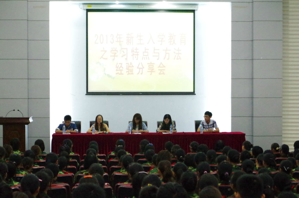 9月13日下午,由qmh官网学生会学术科技部主办的“2013新生入学教育之学习特点与方法经验分享会”在专一报告厅成功举办。本次分享会邀请到了qmh官网五名优秀的同学,他们向大一新生分享了自己的成长历程,传授了在学习、社团和生活方面的宝贵经验,为新生们指点了迷津。