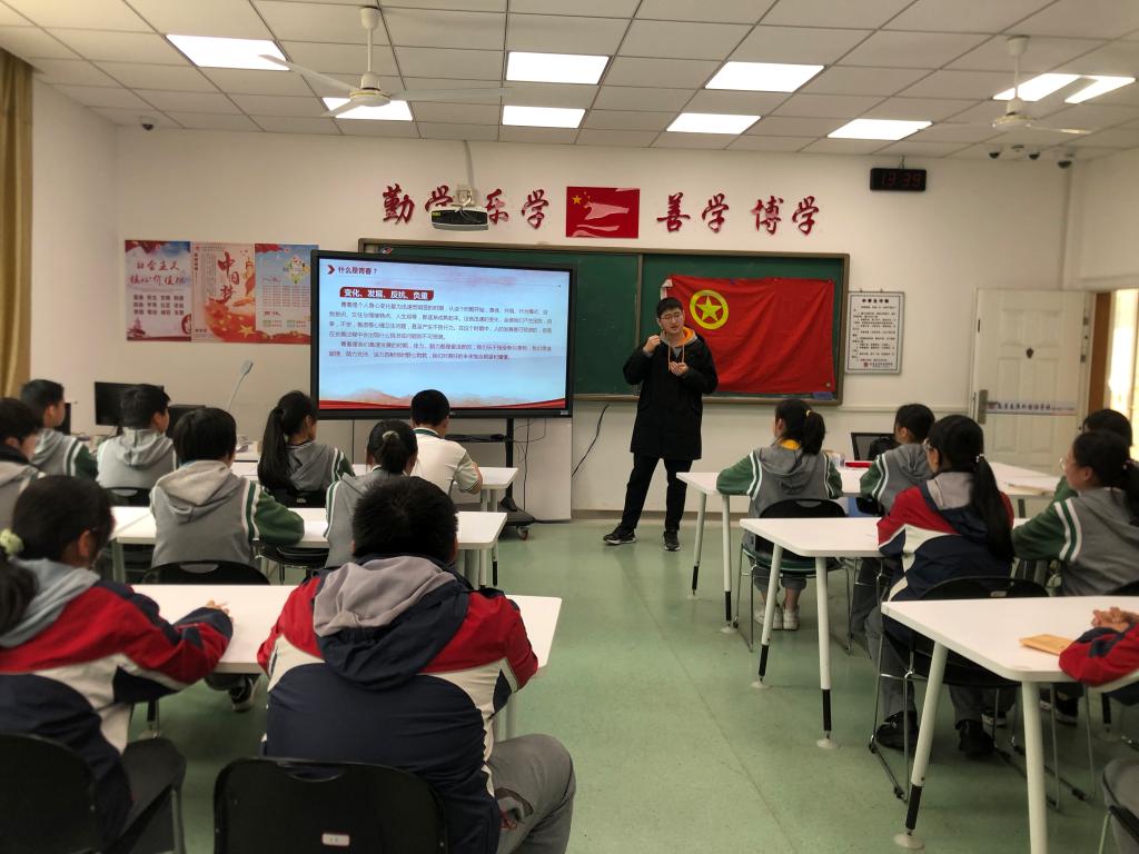 3月29日下午,球盟会qmh网址研究生党支部受邀前往秦淮外国语学校教育集团十八中校区,为21名入团积极分子讲授“奋斗·青春”主题团课。