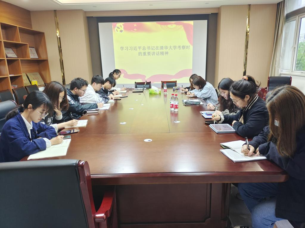 会上,大家集体观看了《新闻联播》相关视频。然后,分团委老师梁少颖带领大家集中认真学习了习近平总书记在清华大学考察时的重要讲话。习近平总书记在清华大学考察时强调,百年大计,教育为本。我们要建设的世界一流大学是中国特色社会主义的一流大学,我国社会主义教育就是要培养德智体美劳全面发展的社会主义建设者和接班人。习近平总书记强调了高等教育的重要性,指出:“党和国家事业发展对高等教育的需要,对科学知识和优秀人才的需要,比以往任何时候都更为迫切。”“我国高等教育要立足中华民族伟大复兴战略全局和世界百年未有之大变局,心怀‘国之大者’,把握大势,敢于担当,善于作为,为服务国家富强,民族复兴,人民幸福贡献力量。”同时,习近平总书记对青年人寄予厚望,“广大青年要肩负历史使命,坚定前进信心,立大志、明大德、成大才、担大任,努力成为堪当民族复兴重任的时代新人,让青春在为祖国、为民族、为人民、为人类的不懈奋斗中绽放绚烂之花。”