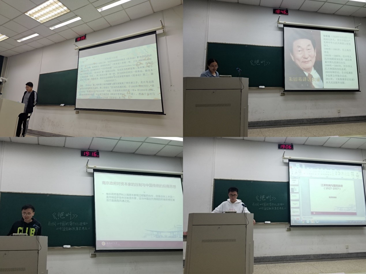 活动中,同学们分享了近期阅读的经典书籍。其中《资本论》《政治经济学批判》《自然辩证法》《国家与革命》等马克思主义经典著作,有《伟大的开端》《<新民主主义论>导读》《火种》《我们走在大路上(1949-2019)》《改变中国:经济学家的改革记述》等红色书籍,还有《钢铁是怎样炼成的》《青春之歌》《保卫延安》《红岩》等文学作品。通过此次读书分享会,同学们深刻体会到经典书籍的魅力,感悟到在一百年的接续奋斗中,是党领导人民创造了伟大历史,铸就了伟大精神,形成了宝贵经验,使中华民族迎来了从站起来、富起来到强起来的伟大飞跃,创造了中华民族发展史、人类社会进步史上的伟大奇迹。