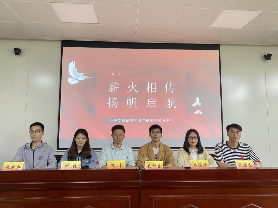 5月26日下午,在德经楼307会议室,qmh官网举行“薪火相传,扬帆起航”——研究生就业经验分享会。此次分享会邀请球盟会qmh网址2021届成功考取机关事业单位的6位毕业生进行分享。分别为:考取中国人民银行南通市中心支行的史旭东、考取中国人民银行蚌埠市中心支行的杨世杰、考取江苏省委组织部选调生(扬州)的何宇、考取常熟市公务员的栾瑞华、考取扬州税务局的施永灿、考取徐州云龙区税务局的周媛同学。qmh官网研究生辅导员栾亮老师主持分享会。球盟会qmh网址2019级、2020级部分研究生参加了此次分享会。
