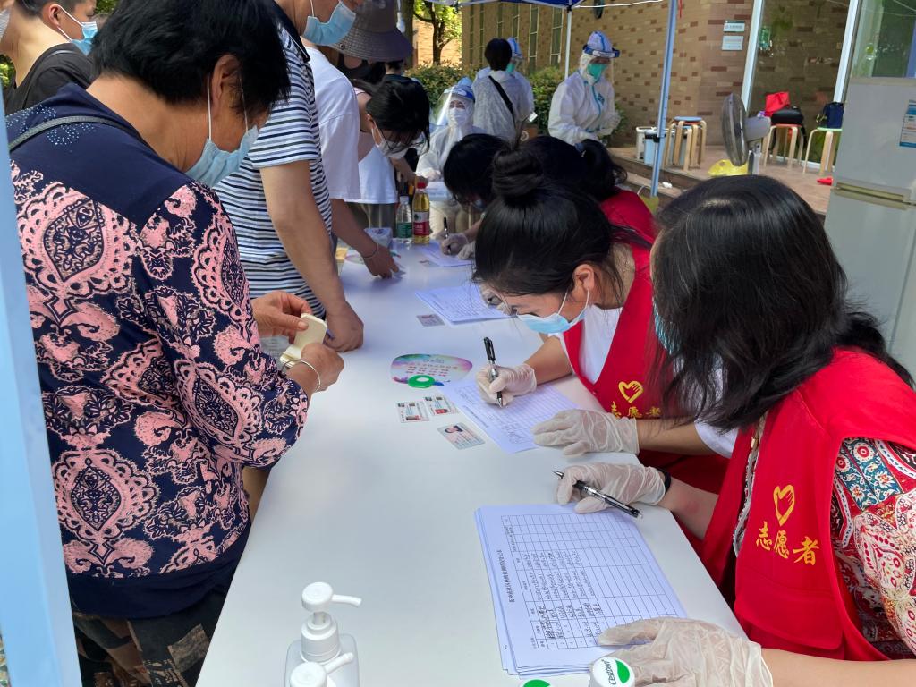 球盟会qmh网址学生抗疫志愿者在核酸检测点进行信息登记
