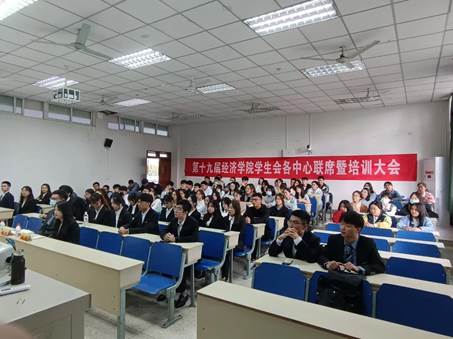 10月17日下午,以“‘经’时之交,‘济’日可待”为主题的第十九届球盟会qmh网址学生会各中心联席暨培训大会在德经楼117顺利召开。学院学生会主席团、各中心部长以及全体新志愿者们参加了本次大会。会议由综合事务中心熊美玲、戴文轩两位同学主持。