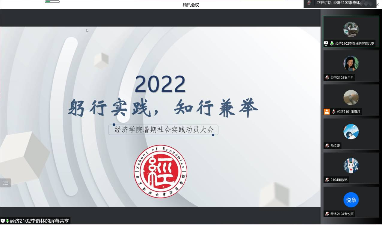 为进一步加深大学生对基层工作的了解鼓励大学生参与实践、走进基层、发挥自身专业特长和聪明才干,号召大学生为家乡的发展助力,6月1日晚,qmh官网于线上召开“躬行实践,知行兼举”——球盟会qmh网址2022年暑期社会实践动员大会。本次大会邀请qmh官网党委副书记袁怡琨,优秀指导教师吴昊老师,校团委副书记(挂职)、qmh官网辅导员梁少颖老师以及qmh官网团委书记潘怡老师进行讲解说明,往期优秀项目负责人同学分享实践经验,全院两百余名同学参加活动。