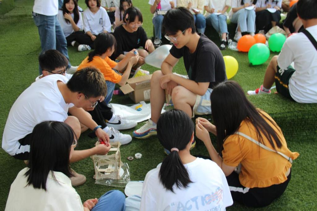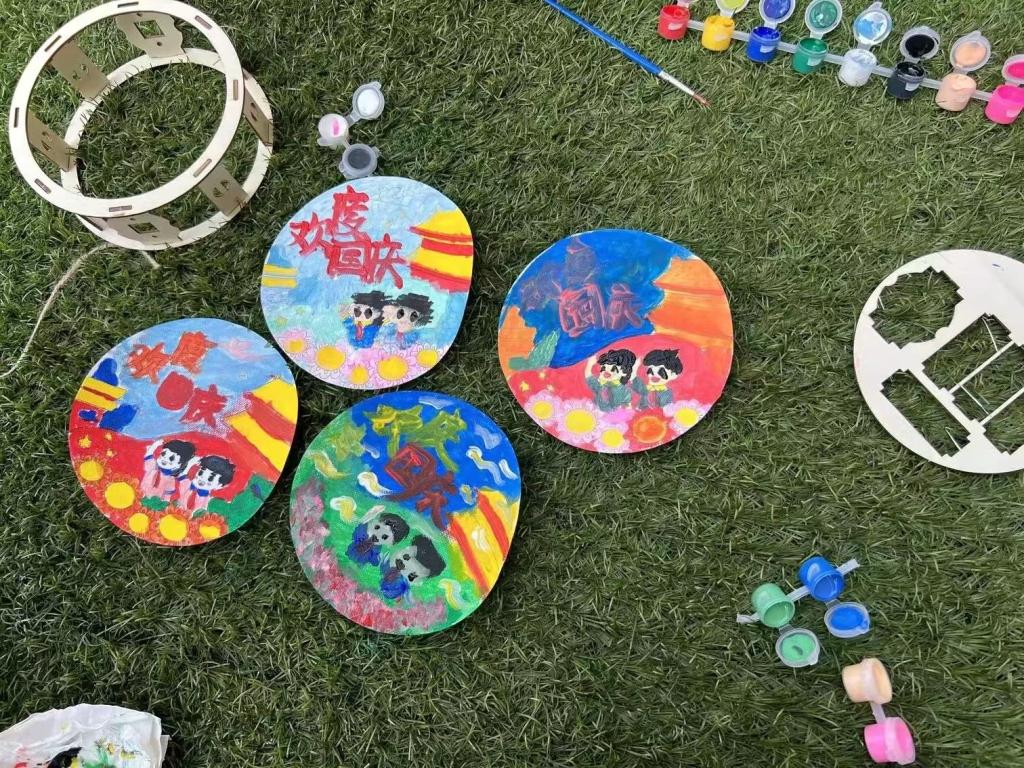 在活动还未开始之时,参加活动的新生们便早已到达场地,大家热情洋溢,脸上挂满了期待。上午十点,活动正式开始,新生们在院学生会带领下,进行了以国庆为主题的手工制作,将制成的手工作品装点草坪,为祖国庆生。同学们有的认真拼装灯笼,有的仔细绘制图画,还有的吹气球进行装点,满怀热忱,全神贯注,用手工制品表达对党和国家的赞美以及对未来的美好期盼。同心合意,庶几有成。在同学们的协力合作下,一个又一个手工作品逐渐成形,精致美丽,引人注目,上面或用亮眼的色彩写下“欢度国庆”以示国庆之际的喜悦,或用灵动的笔触画下朝气蓬勃的小人向国旗敬礼表达对祖国的崇敬。赤忱的心给冰凉的颜料也添了温度,同学们对祖国母亲的爱意与尊敬于色彩间跃动。