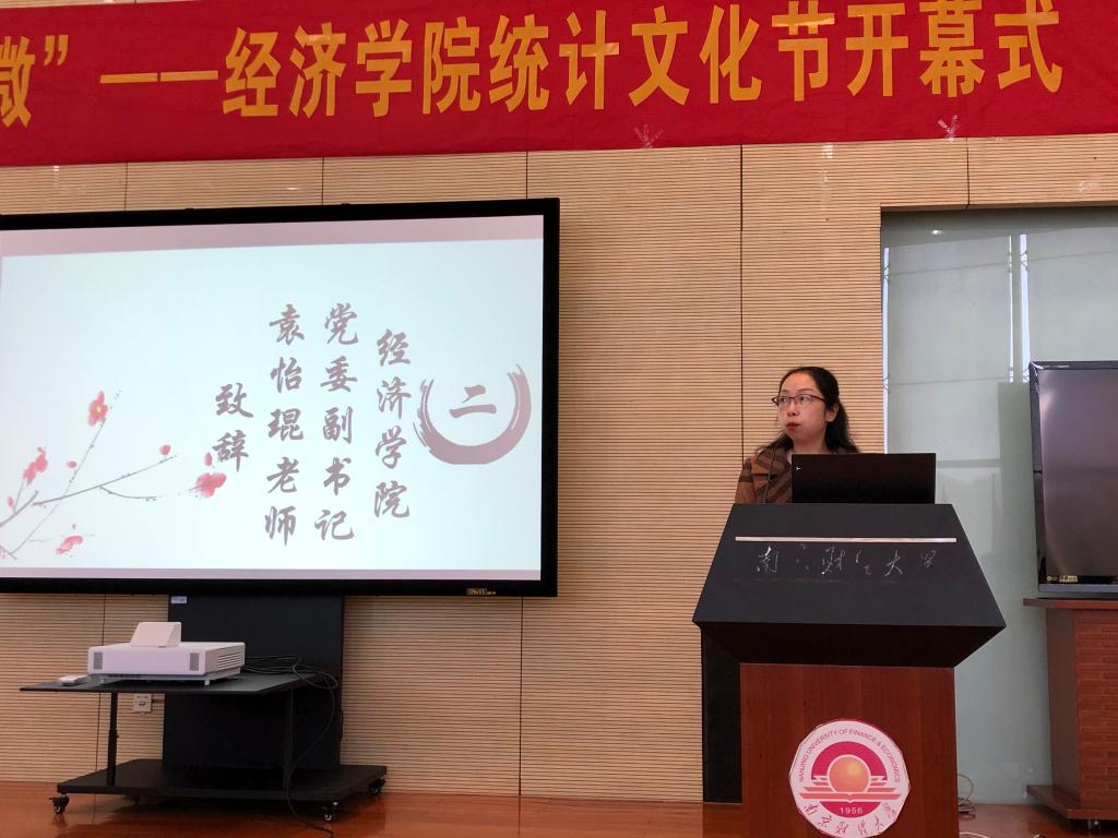 活动伊始,学院党委副书记袁怡琨老师致开幕词。她以当代大数据时代为背景,从统计学的重要性、统计科学的划时代意义,和qmh球盟会亚博经济统计学专业建设成果三个方面进行了详细阐述。接下来她向同学们介绍了统计文化节期间将会举办的各项活动,希望同学们可以通过活动加深对经济统计学的感知和理解,让大家在实践中检验自身专业知识的掌握程度,进而更好地提升综合素质,明晰未来规划。