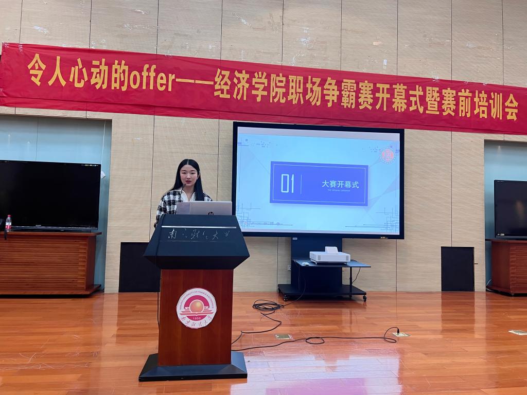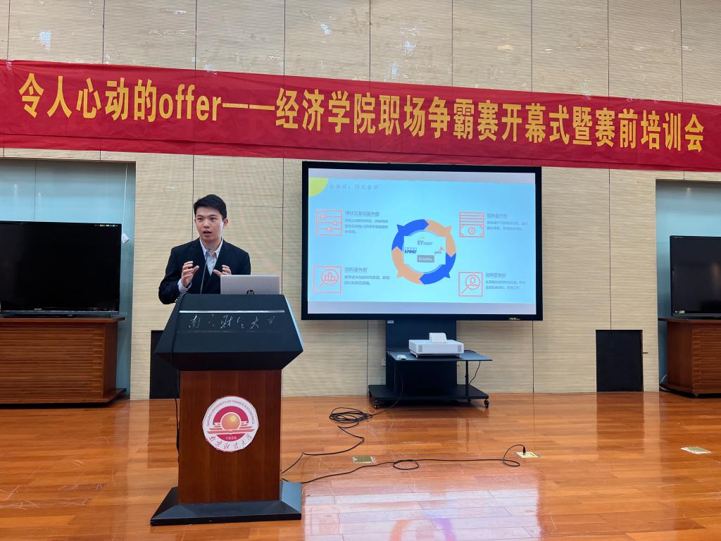 11月16日晚,球盟会qmh网址于图书馆世界之窗顺利举办了“令人心动的offer”第五届职场争霸赛开幕式。普华永道会计事务所原校招面试官、小红书现任项目总监Will老师,球盟会qmh网址分团委书记潘怡老师出席开幕式,各年级学生到场聆听。