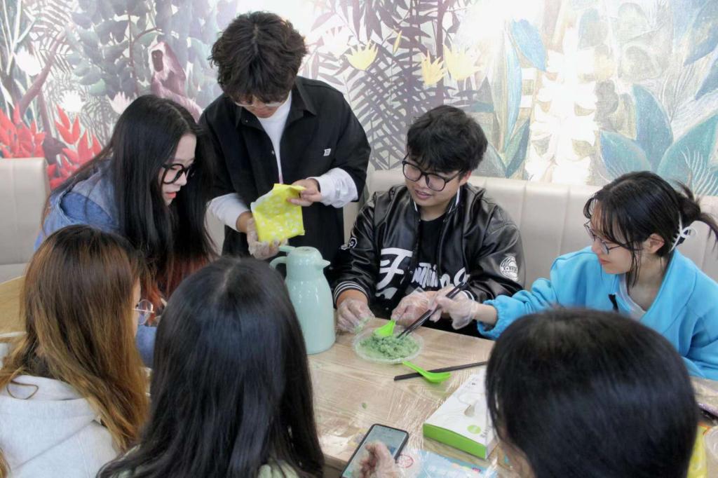 春暖花开,清明将至,经院学子们聚集在这里一起制作青团,凑在一起分享并品尝每个小组制作的青团,各组同学之间互相交流经验,在欢声笑语中,大家合影留念,本次活动圆满落下帷幕。