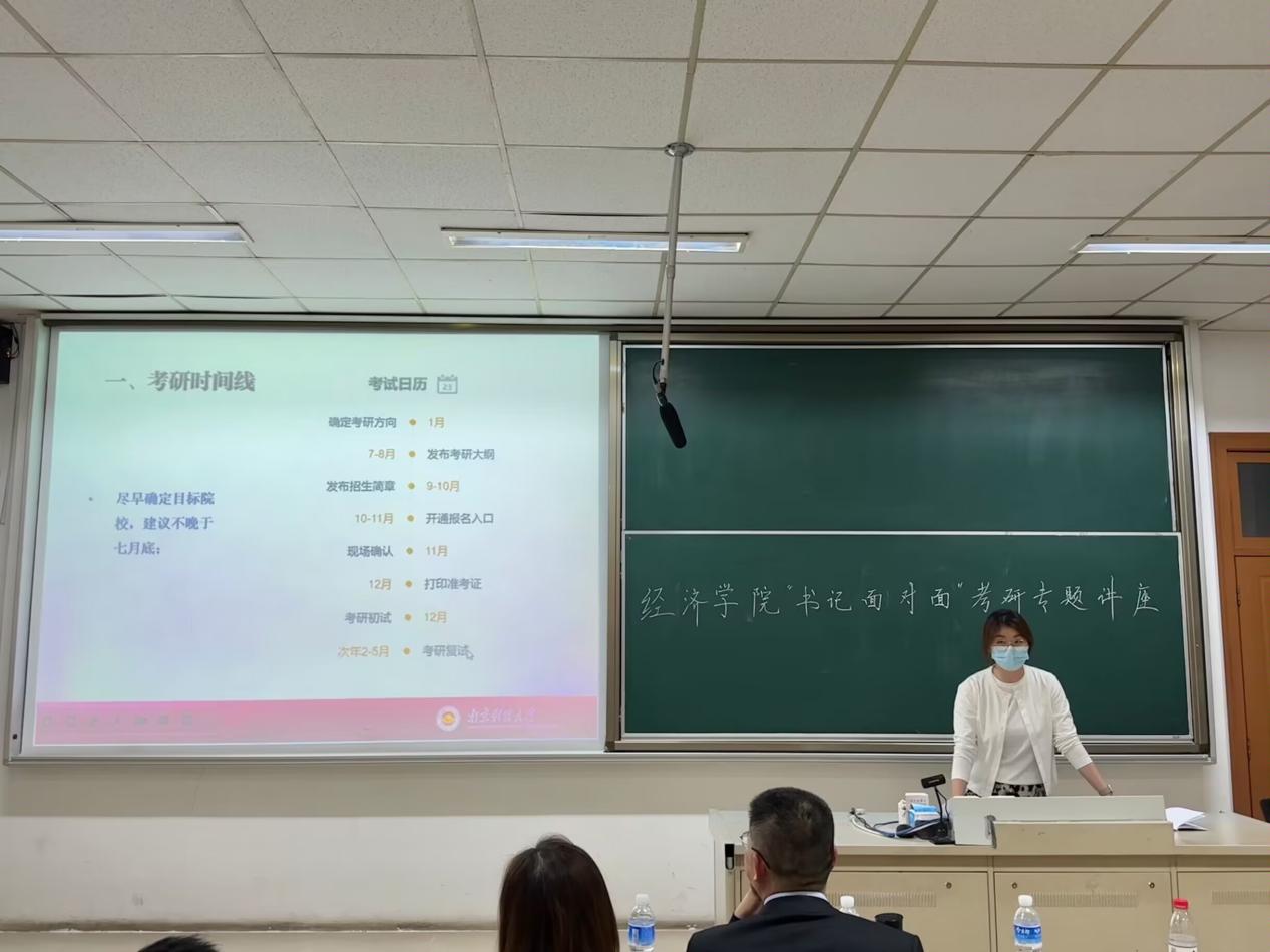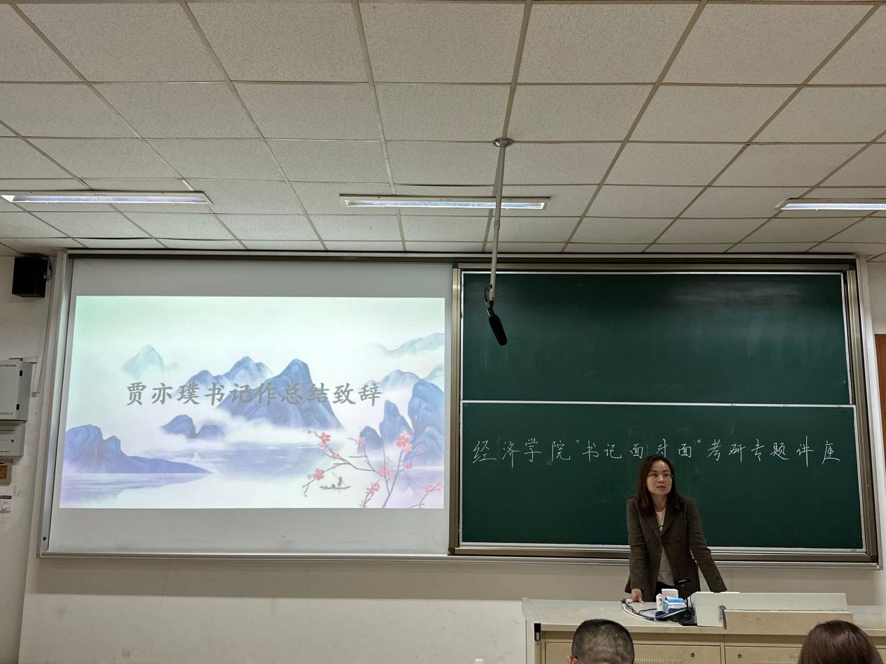 本次“书记面对面”考研升学专题讲座,以就业育人为导向,立足于有升学需求的学生,以学院整体升学率的提升为目的,为经院考研学子在院校的选择和考研的复习规划上拨开了云雾,指明了方向和清晰的路线,使同学们的目标更明确,意志更坚定,让同学们在考研途中不迷茫、不退缩,绽放属于自己的光彩。