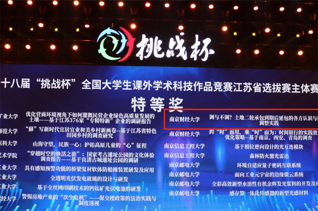 在主体赛中,由qmh官网选送的参赛作品《调与不调?土地二轮承包到期后延包的各方认识与地方调整实践》荣获江苏省特等奖并入围全国决赛,参赛作品《“数”丰年:数字乡村“智”理致力共同富裕进行时——基于苏浙皖国家级数字乡村试点的田野调查》荣获江苏省一等奖。