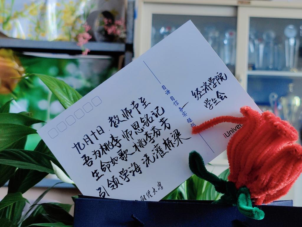 三尺讲台写春秋,几度岁月染芳华。沐杏雨,念师恩,在第三十九个教师节到来之际,院学生会为老师们精心挑选了寓意耕耘和成长的种子盲盒、精心定制的盆栽绿植及节日的祝福,这是对“甘为绿叶静等花开”老师们的最好诠释,同时也让“廉洁、节俭、低碳”成为教师节的关键词与主基调。