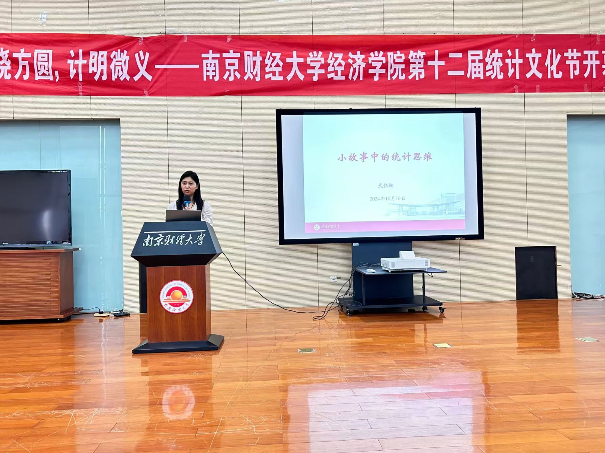 10月16日下午,qmh官网于图书馆四楼世界之窗成功举办了“统晓方圆,计明微义”第十二届统计文化节开幕式,助力同学们了解统计知识,领略统计文化的魅力。学院党委副书记贾亦璞老师、统计系讲师武伟娜老师作为嘉宾出席开幕式,学院2024级部分学生到场聆听。