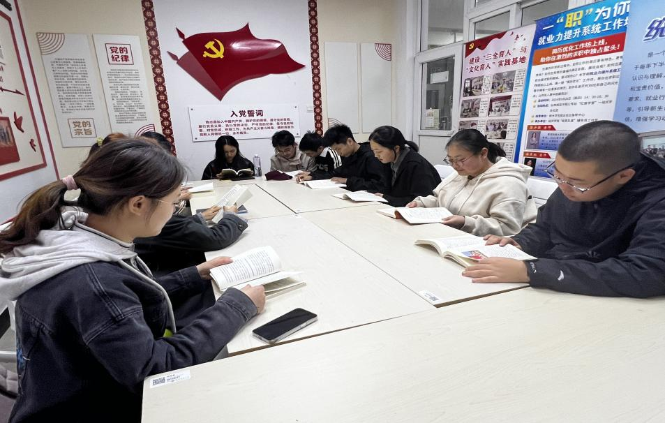 本次活动创新打造“三维育人”体系:在空间维度,依托“红苗学堂”建设“沉浸式阅读角”;在时间维度,建立“15天阅读打卡计划”,每两周组织学生党员线下一起阅读,交流阅读心得;在实践维度,组织党员们集体观看《党史中的经济档案》系列微视频,深入了解土地革命时期经济政策与红色金融体系建设,深刻体会到“经济战线同样需要革命精神”。
