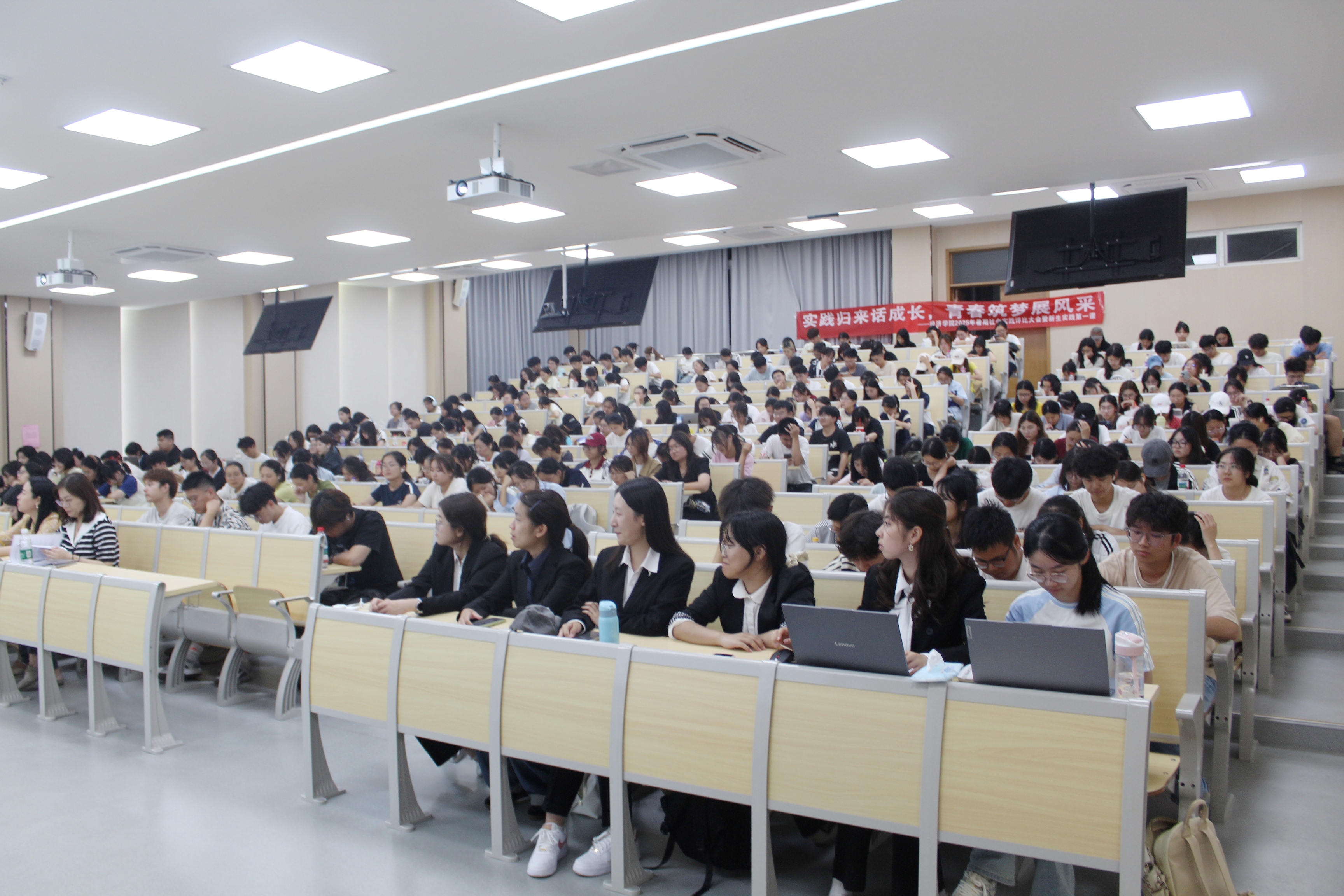 为践行“知行合一”教育理念,涵养球盟会qmh网址青年的社会责任感,且为新大一未来的社会实践提供理论支持与路径参考,9月23日晚,球盟会qmh网址于博观楼202教室成功举办"实践归来话成长,青春筑梦展风采"暑期社会实践评比大会暨新生实践第一课。校团委书记张蔚伟老师、球盟会qmh网址党委副书记贾亦璞老师、团委书记潘怡老师和2025级新生参与本次活动。