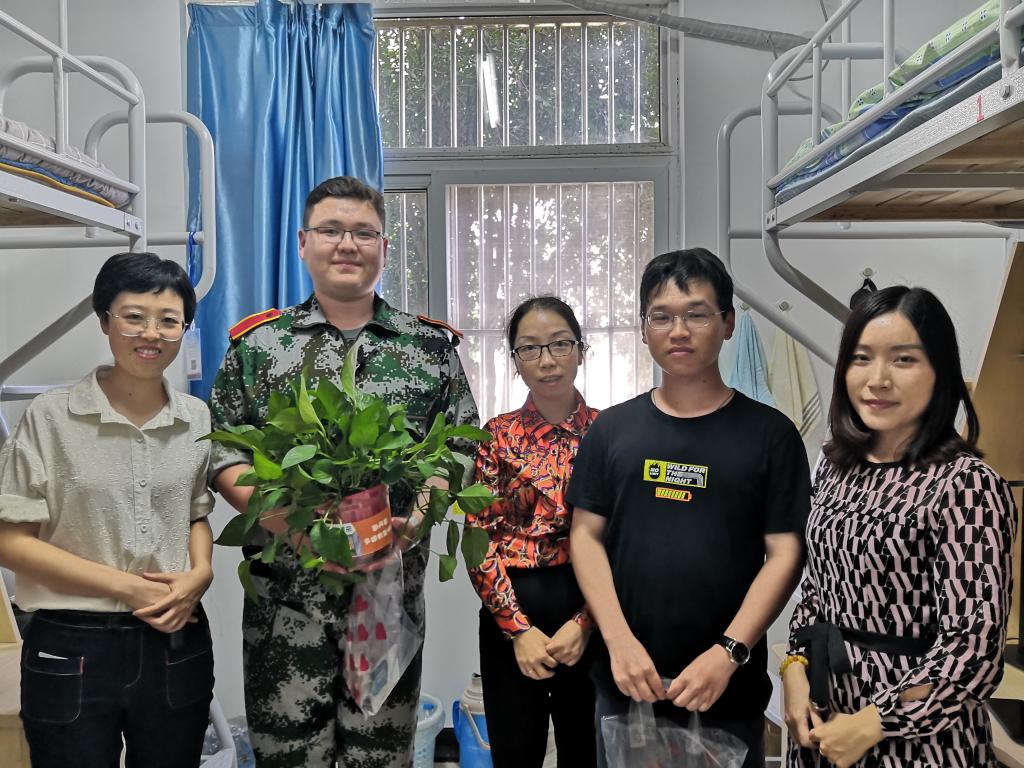 走访中,袁书记不断提醒新生同学关注寝室卫生、时常开窗通风;加强体育锻炼、增强自身体魄;认真参加军训、磨砺精神意志;保持团结友善,助力寝室文明,为接下来的专业学习和大学生活做好充分准备。同时,袁书记叮嘱同学们要营造积极、健康、向上的宿舍文化,永葆感恩之心,主动与家人通电话,报送平安,送上祝福。