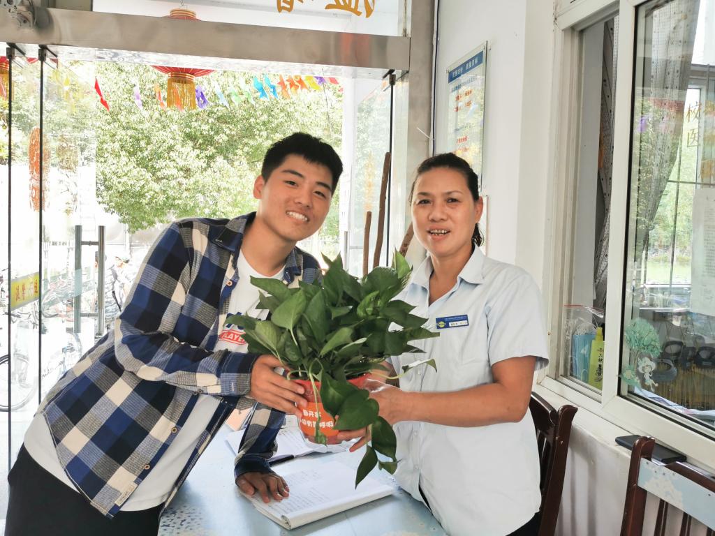 国庆和中秋佳节在即,为了让刚入校的2020级新生欢度更快适应环境、欢度大学里的第一个节日,感受到来自学院的温暖,9月23日中午,qmh官网党委副书记袁怡琨老师、学工秘书尹海燕老师、新生辅导员陶海韵老师和院学生会的同学们来到学生宿舍,为每个小寝送上绿萝,并为每个新生带来中秋月饼、消毒湿巾等节日礼品。