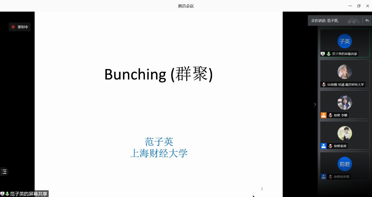 8月19日上午,上海财经大学范子英教授为暑期学校的学员们作了题为“Bunching方法的原理及其应用”的专题讲座。讲座由qmh官网崔向阳教授主持,暑期学校全体成员及我校部分青年教师参与了此次讲座。