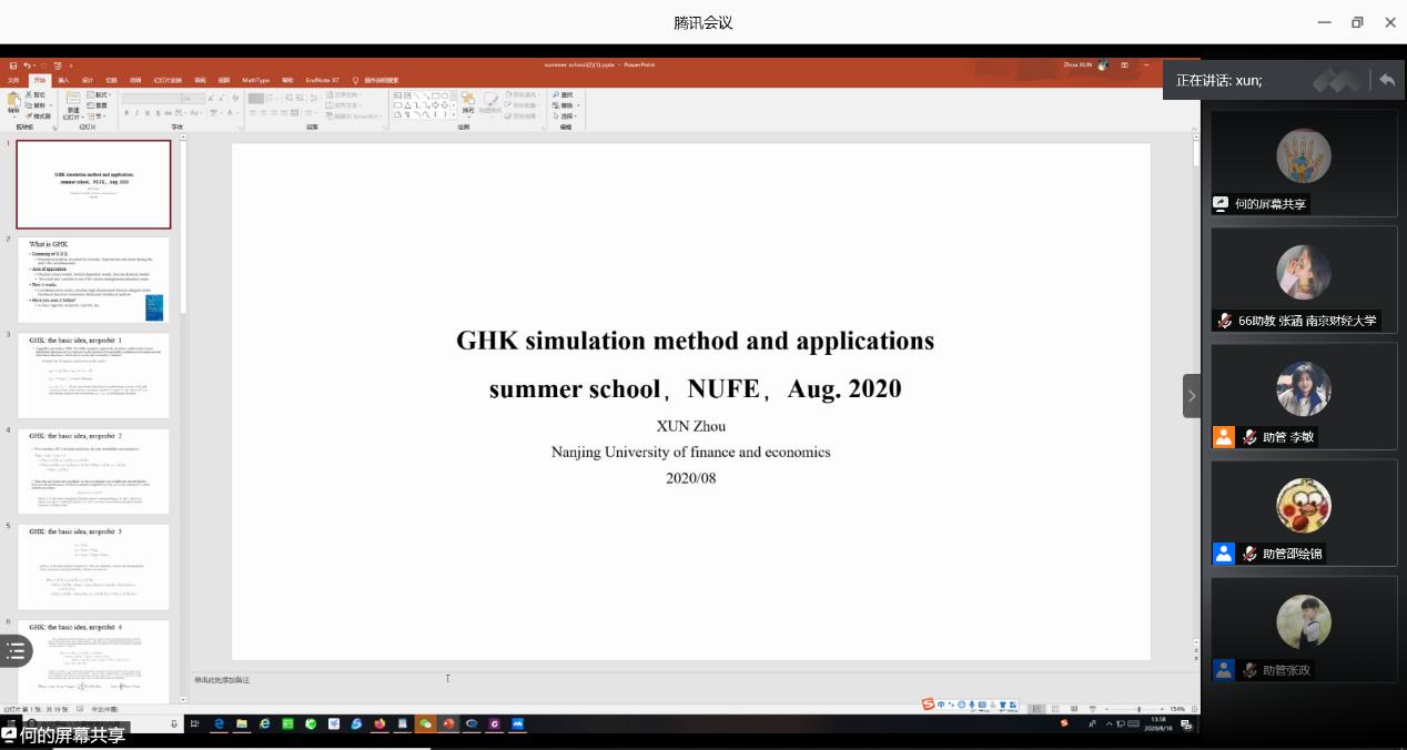8月18日下午,qmh球盟会亚博寻舟副教授为暑期学校的学员们作了题为“GHK模拟方法及其应用”的专题讲座。