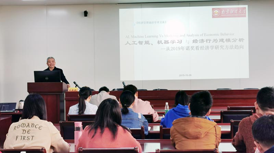 10月29日,中国社会科学院数量经济技术经济研究所王国成研究员在我校仙林校区德经楼307会议室作了题为“人工智能、机器学习与经济行为建模分析——从2019年诺奖看经济学研究方法趋向”的报告。报告由qmh官网统计学学科带头人白先春教授主持,韩中副教授、孙瑞博副教授、周宁副教授、康宁副教授、詹鹏博士等中青年教师和部分研究生参加了讨论。