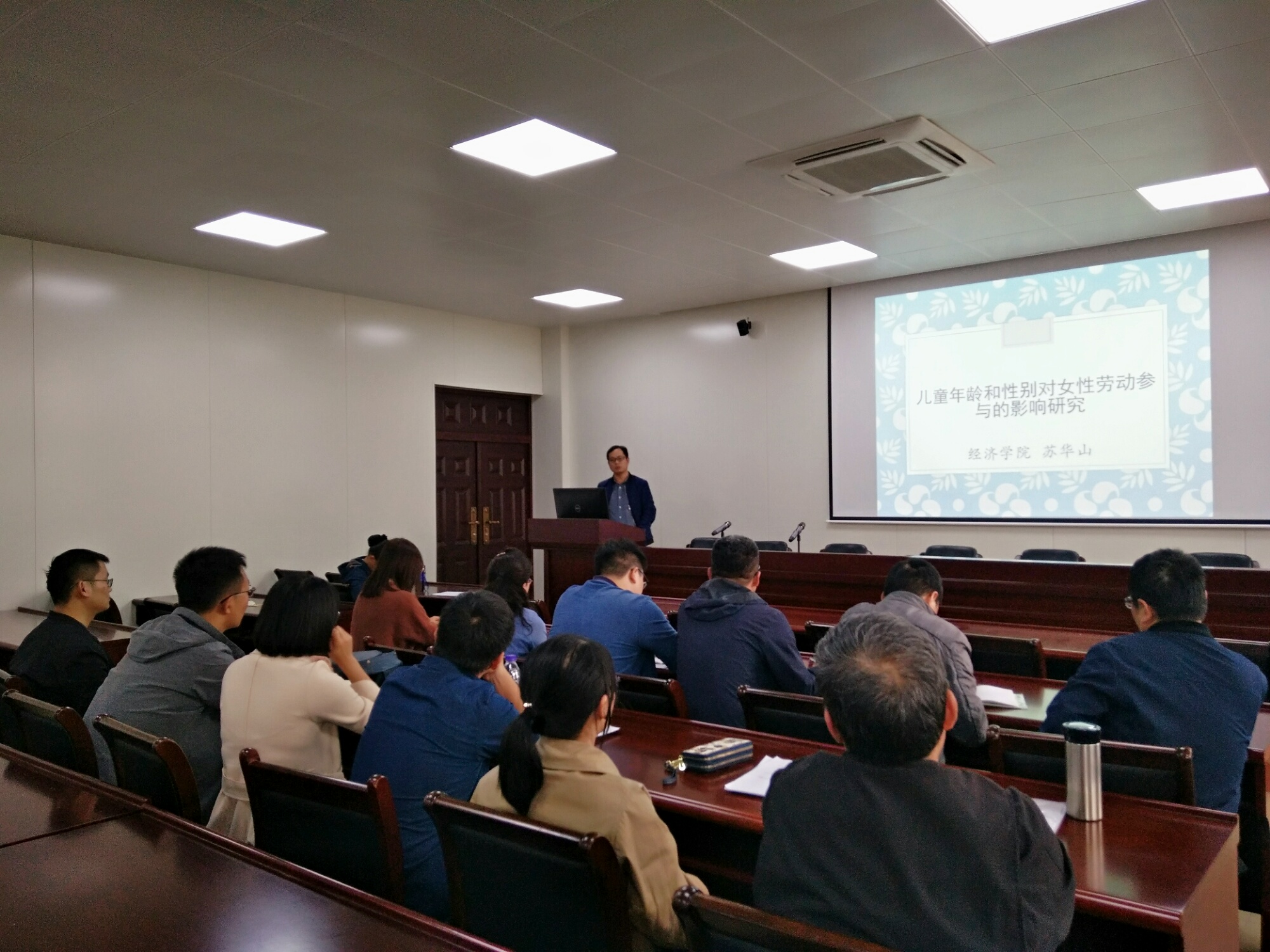 10月16日,qmh官网双周学术论坛第9次报告在德经楼307会议室举行。本次报告由苏华山副教授主讲,报告的主题是“儿童年龄和性别对女性劳动参与的影响研究”。本次论坛由qmh官网副院长尹敬东教授主持,qmh官网部分教师参加了本次学术活动。