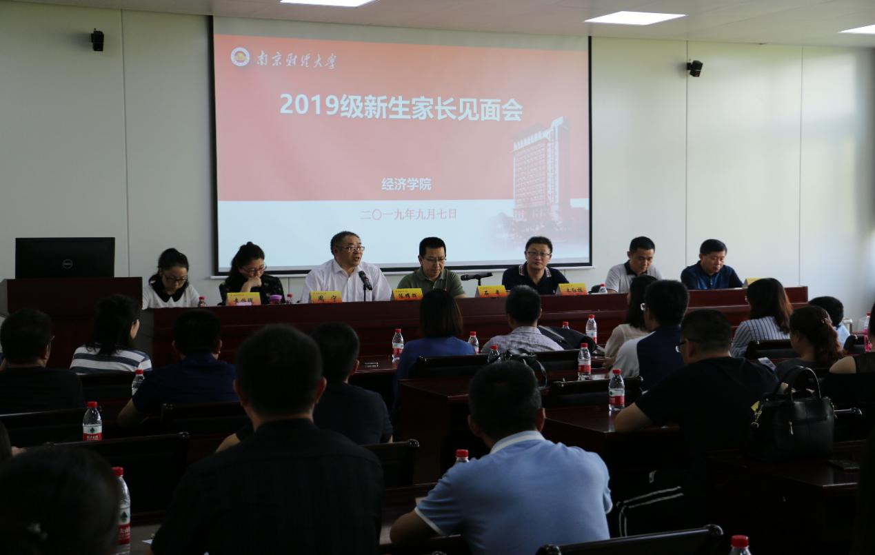 会上,石奇部长对球盟会qmh网址2019级新生及家长表示祝贺,并向家长们介绍了学校的发展历程、教育理念、办学特色和人才培养成果,希望家长们能够与学校通力合作,建立家校联动机制,为学生的成长成才提供坚实基础和保障。朱红根院长代表球盟会qmh网址全体教职员工向家长们表示感谢,介绍了学院师资力量、专业与学科建设、科研成果、人才培养成果等内容,鼓励2019级新生在大学期间努力学习、不负选择,拥有更完善的人格品质。院长助理、统计系主任韩中和经济系主任周宁,分别就两个专业的培养方案、师资力量、专业建设成果及学习特点等进行了讲解。鼓励同学们在大学期间积极参与教师科研,培养创新思维,提升综合素质,为今后的发展铺路。教师代表、江苏省教学名师、全国“五一”奖章获得者王庚教授就“好学生的标准,要成为什么样的人,家长的期望是否合适”这三个问题与家长进行探讨。希望家长改变“唯学习论”评价方式,培养孩子的自我管理能力,帮助其提升专业能力,促使孩子保持良好的心态、拥有健康的体魄、过高质量的大学生活。随后,主持人陈耀辉教授希望2019级的新生在大学阶段树立正确的大学学习观、关注学习与生活的品质,把握光阴,不断充实自我,积极要求进步,书写属于自己的南财故事。最后,家长们就考证、毕业生就业去向、第二学位等关心的问题提问,学院相关领导和老师一一作答。