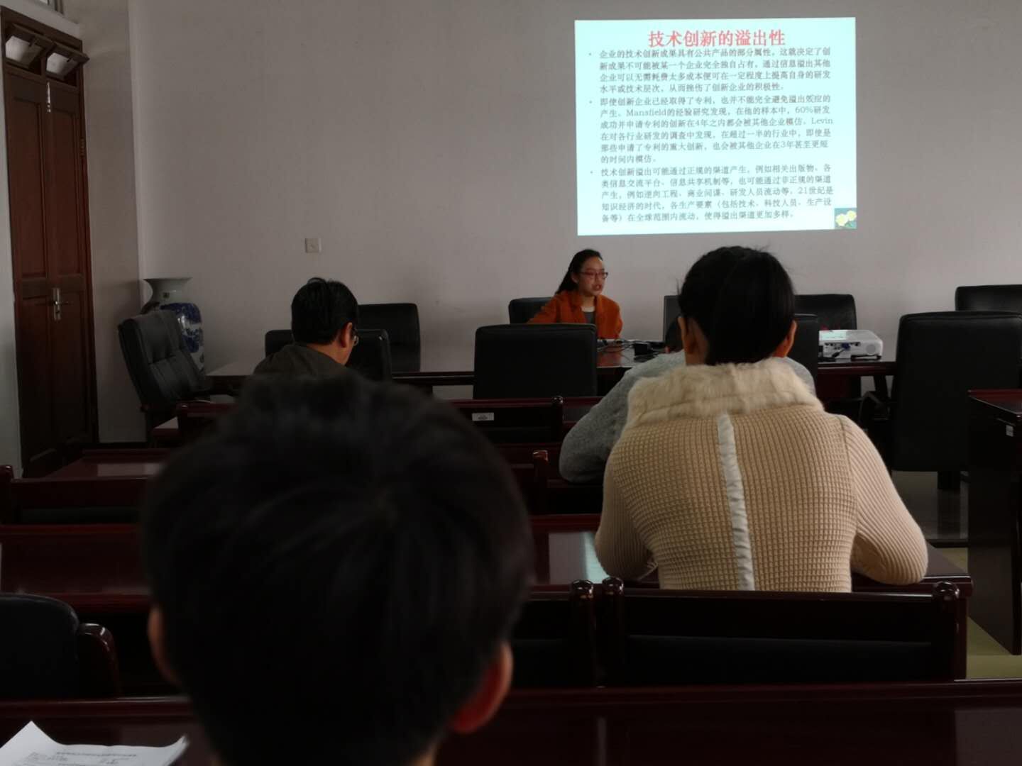 张艳芳老师首先介绍了我国企业技术创新的现状,指出以企业为主体的技术创新体制尚未真正形成,存在动力不足,能力薄弱的问题。接着,分析了造成这种状况的原因,一方面是企业技术创新能力不强,另一方面也是由技术创新的特性导致的,技术创新的风险性和溢出性等都直接影响着企业技术创新策略选择。随后,就目前做所的关于溢出性和风险性影响的相关研究进行了详细介绍。