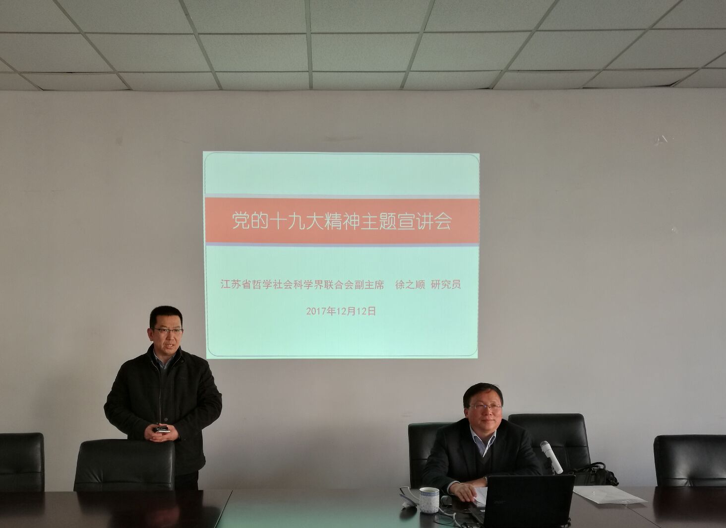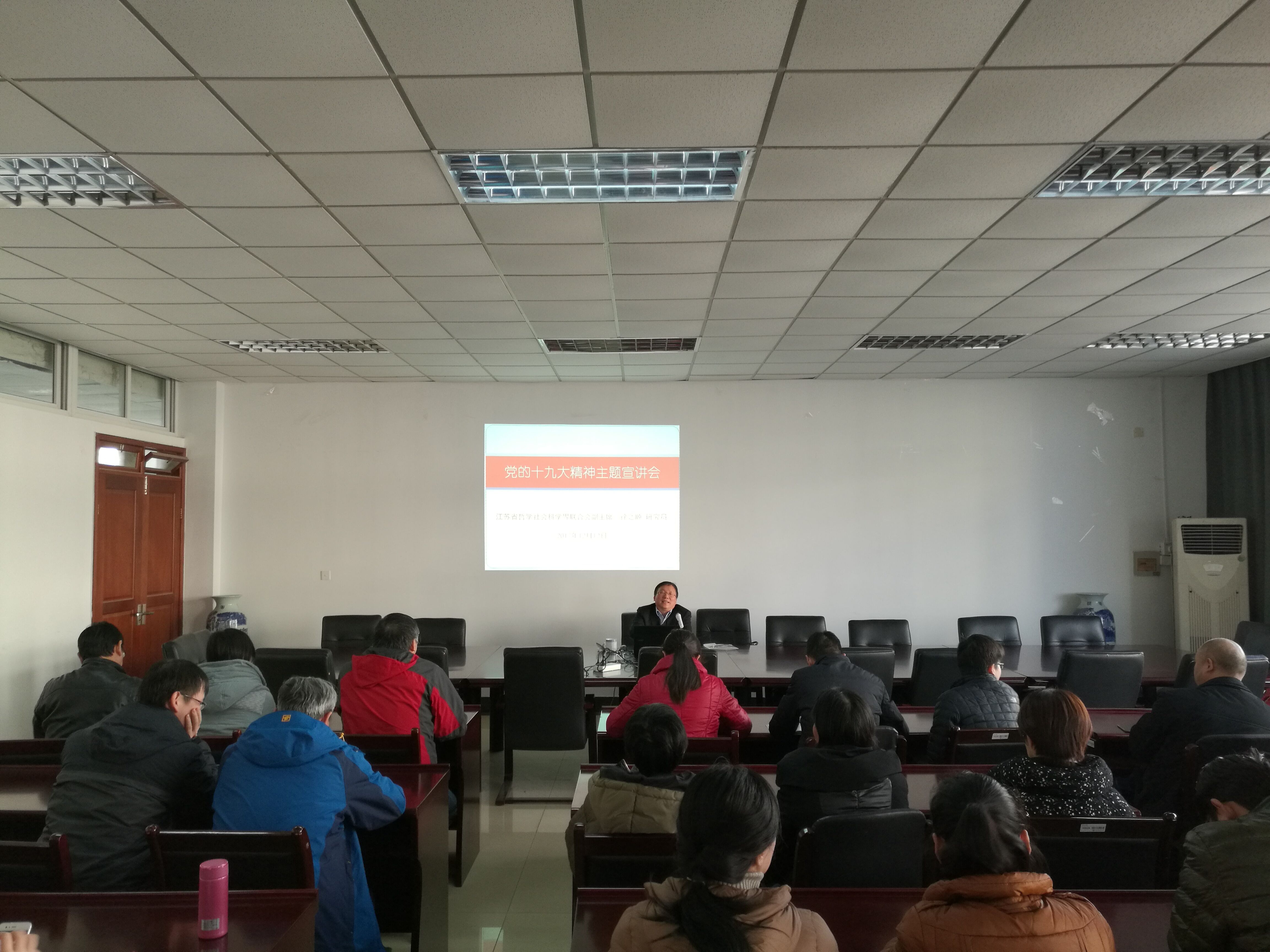 12月12日下午,qmh官网德经楼307室举办学习十九大精神专题辅导讲座,邀请江苏省哲学社会科学界联合会副主席徐之顺主讲。讲座由qmh官网院长石奇主持,qmh官网全体教师参加了讲座。