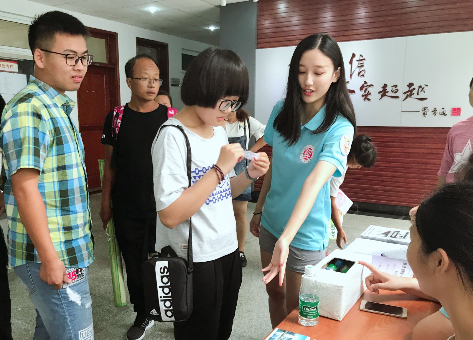 迎新现场,qmh官网老师和志愿者们通力合作,以饱满的热情迎接新生和家长们的到来。志愿者们在引导新生报到的途中,帮助新生和家长提行李、拿包裹,为新生介绍校园环境、学院情况以及学习经验。