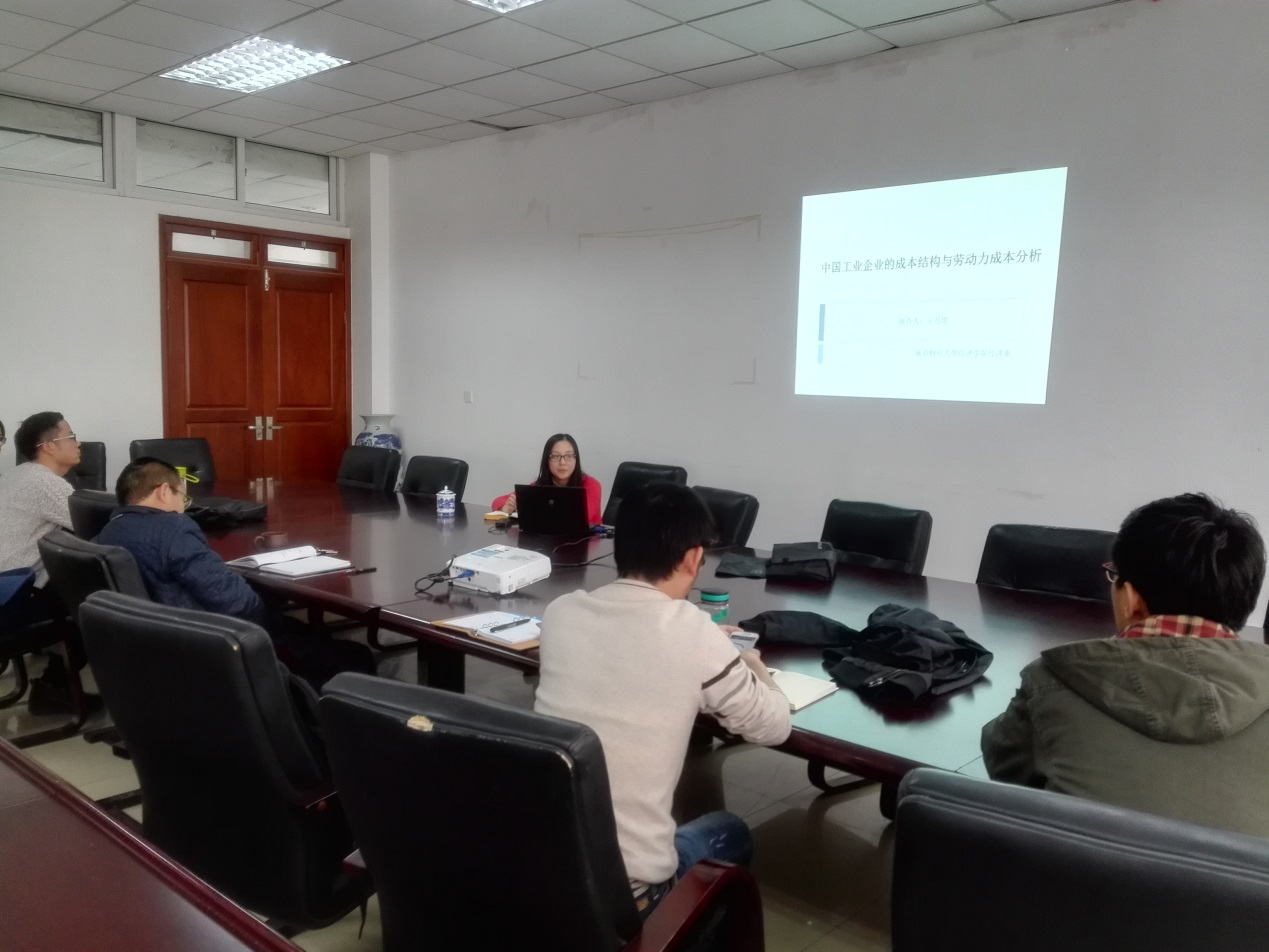 2016年12月5日(周一)下午2点,球盟会qmh网址在经济学科楼307举办了长三角“收入分配与经济增长”学术论坛第十一次报告。报告题为《中国工业企业的成本结构与劳动力成本分析》,报告人为本院副教授王万珺博士。本院和财税学院部分老师参加了讨论。