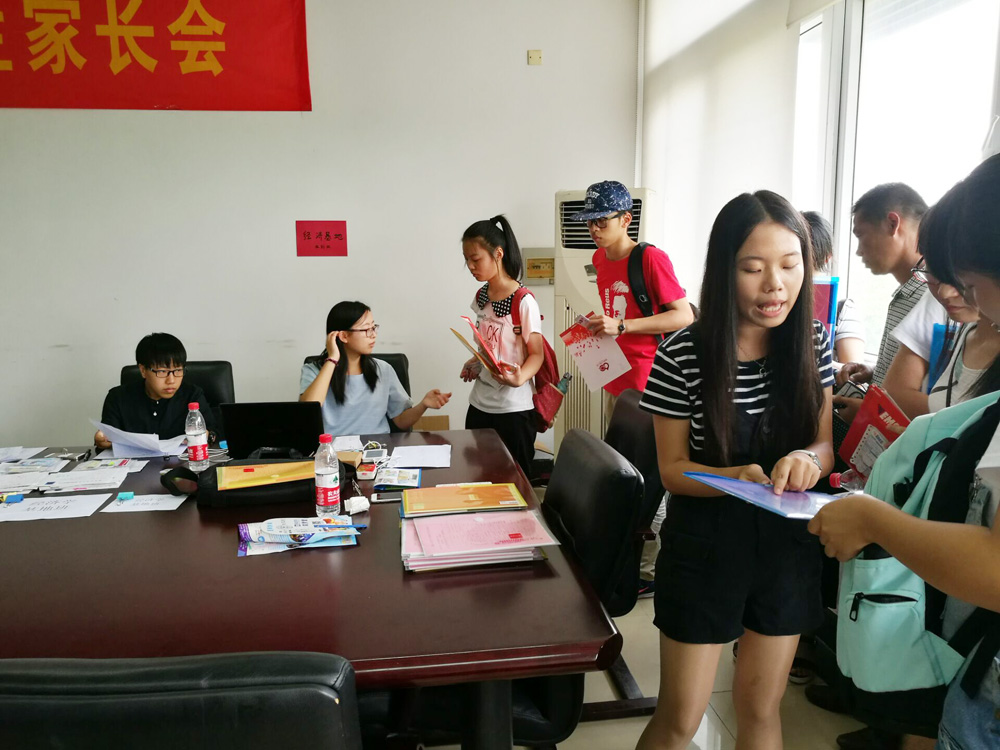 伴着初秋送来的丝丝清爽,载着父母加注的深深期盼,又一批新的面孔来到了qmh球盟会亚博。9月3日,我校2016级新生报到,qmh官网迎来了近三百名朝气蓬勃的学子。早上七点,老师和志愿者们均已准备就绪,以饱满的热情迎接新同学和家长们。各部门分工明确,各司其职,整个过程有条不紊地进行着。