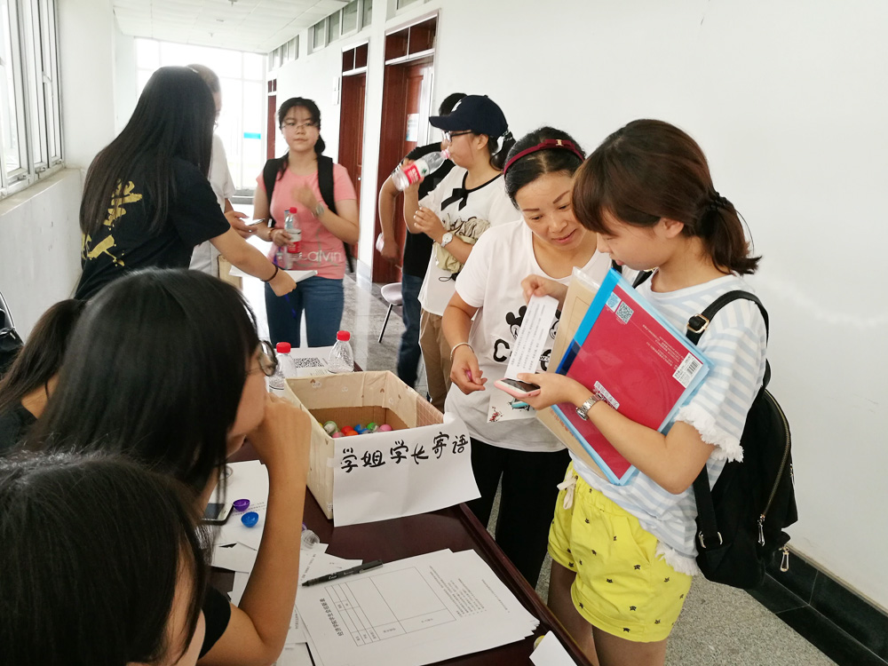 由qmh官网党员干部、学生干部以及大二各班学生代表组成的迎新志愿服务队,秉着“爱由心生,竭诚服务”的原则,忙碌穿梭于经济学科楼与北苑宿舍之间。引领报到的路上,热情的志愿者们给新生及家长们介绍起校园的建筑及周边环境,以及自己大学的经历与经验。家长和新生们听的仔细认真,志愿者们回答的耐心细致,每个人脸上都洋溢着喜气和欢乐。四里有余的路程一点儿也不觉得漫长,反而意犹未尽。