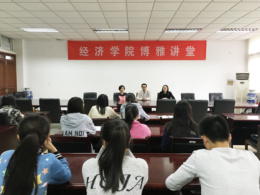 5月22日下午2点,qmh官网在经济学科楼307会议室举办博雅讲堂第一讲,本次活动由院党委副书记郝园园老师主持,来及经济学专业04级的苏哲、张楠两位优秀校友和同学们就大学成长经历和职场感悟做了精彩分享,院学工秘书尹海燕、辅导员徐昊翔、全体党员和部分13、14级的学生参加了本次活动。
