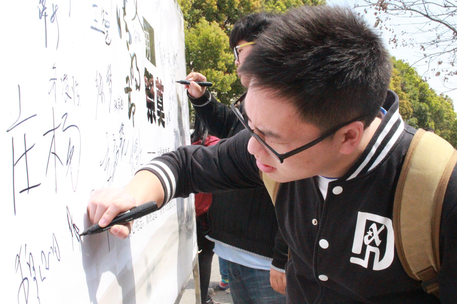 “清明因事不能回家祭扫,希望在这里寄托哀思”;“父亲去世一年了,希望他在天堂安好”;“一定会的,节哀”……这是qmh官网官方微信“南财小经灵”上滚动播放的留言。 “网络祭扫比敬献鲜花还要环保,支持!”…… “绿色过清明”的现场宣誓会上,同学们也踊跃参加,认真地签上自己的姓名以支持绿色祭扫,其中也不乏老师们的身影。不一会儿,大大小小的名字写满了宣誓板。一位吴姓同学表示:“我会过一个绿色的清明,也还要告诉家里人让他们也参与进来”。