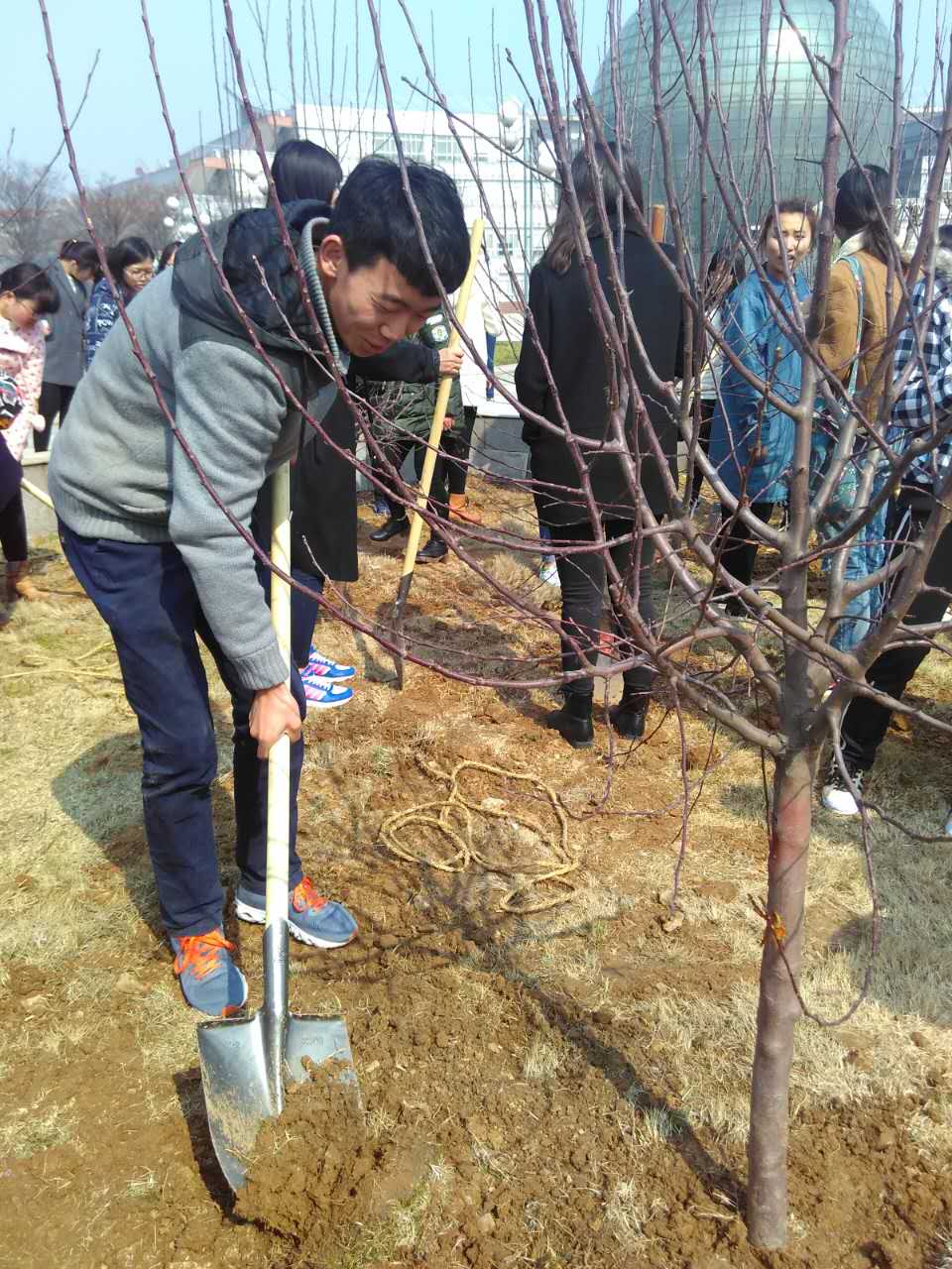 上午九时许,图书馆前的海棠林已是一派忙碌的景象。据悉,这次的海棠树苗为91级统计系校友和在校本科生联合捐赠。活动中,同学们分工明确,互相配合,齐心协力完的海棠树苗赋予更深刻的意义。