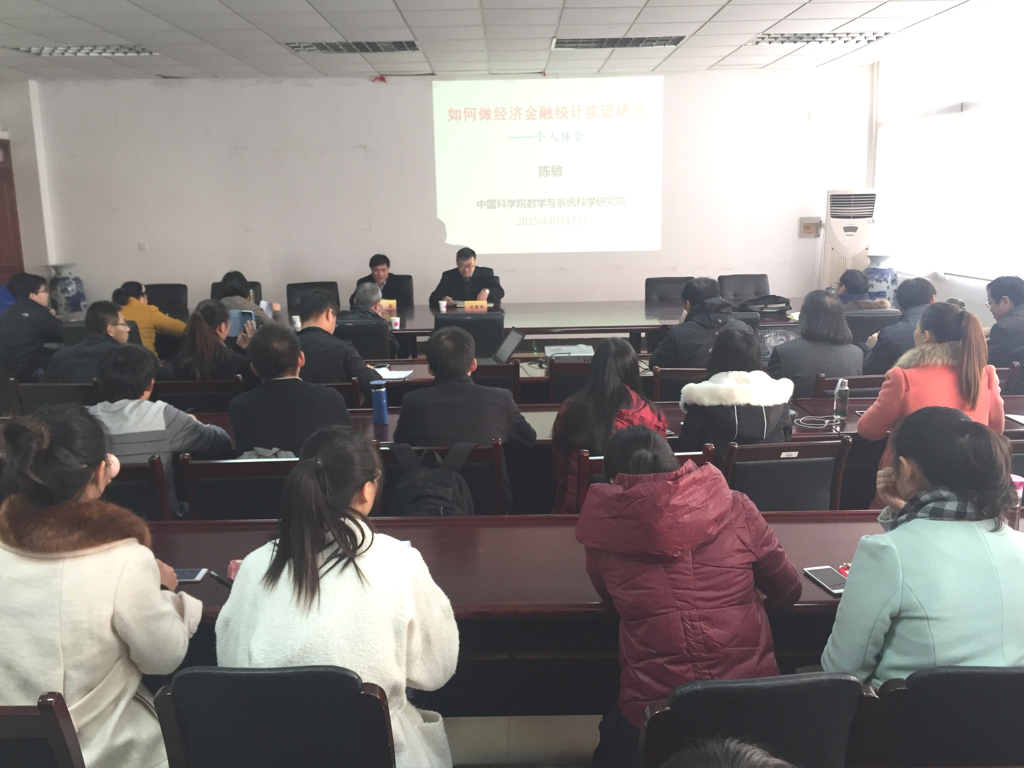 12月4日下午,应qmh官网邀请,中科院数学与系统科学研究院副院长、博士生导师陈敏教授来我校讲学,在仙林校区经济学科楼307会议室作了题为“如何做好经济与金融统计实证研究”的报告。报告会由学院副院长(主持工作)陈耀辉主持,学院相关师生聆听了报告。