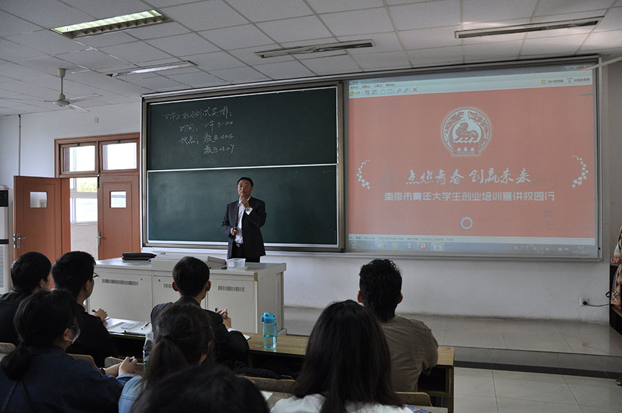 在李克强总理“万众创新,大众创业”精神的激励下,10月24日上午9时,qmh官网联合南京中华财经进修学院、育仕创业职业培训学校共同开展了大学生创业宣讲校园行活动。
