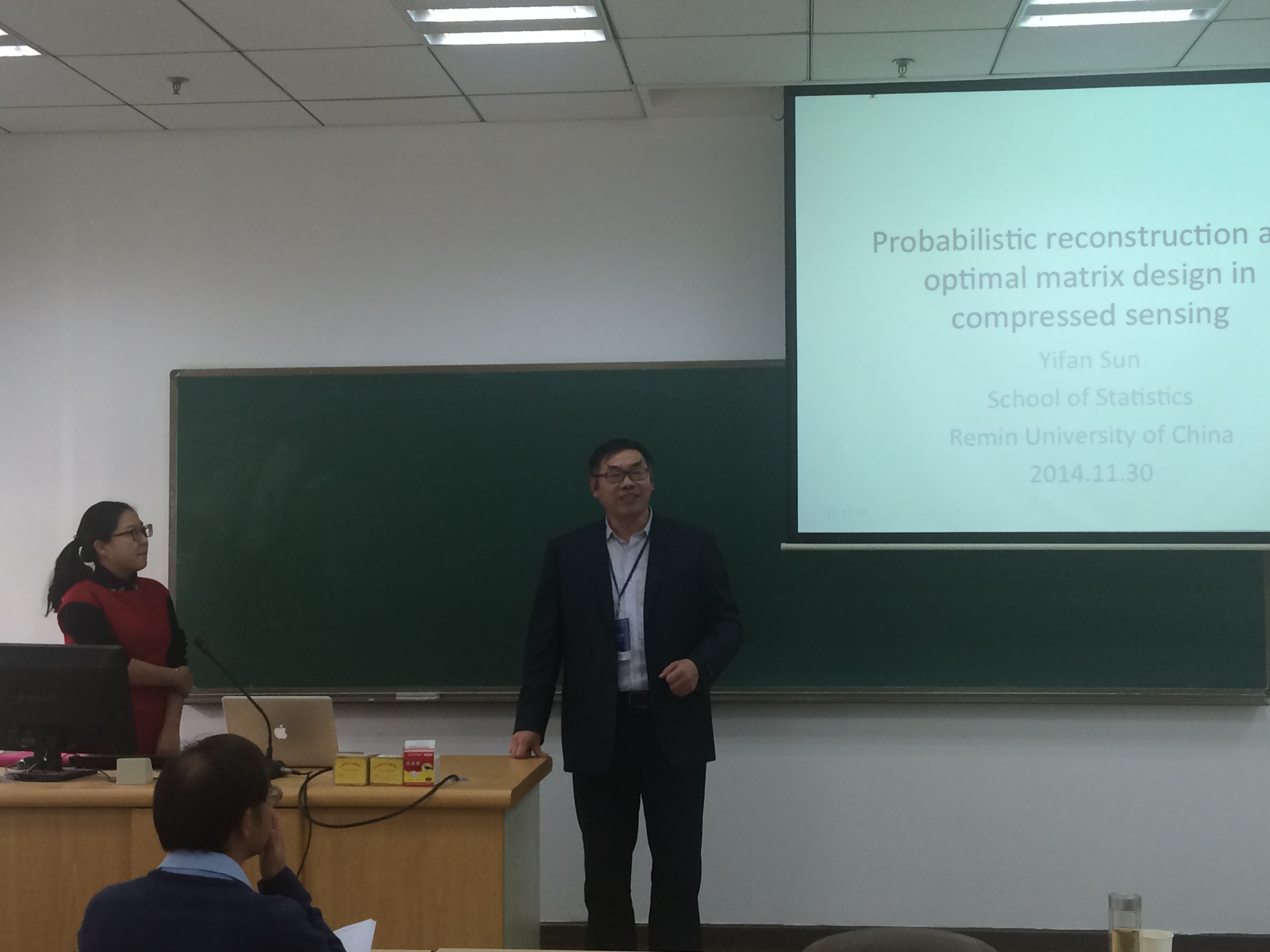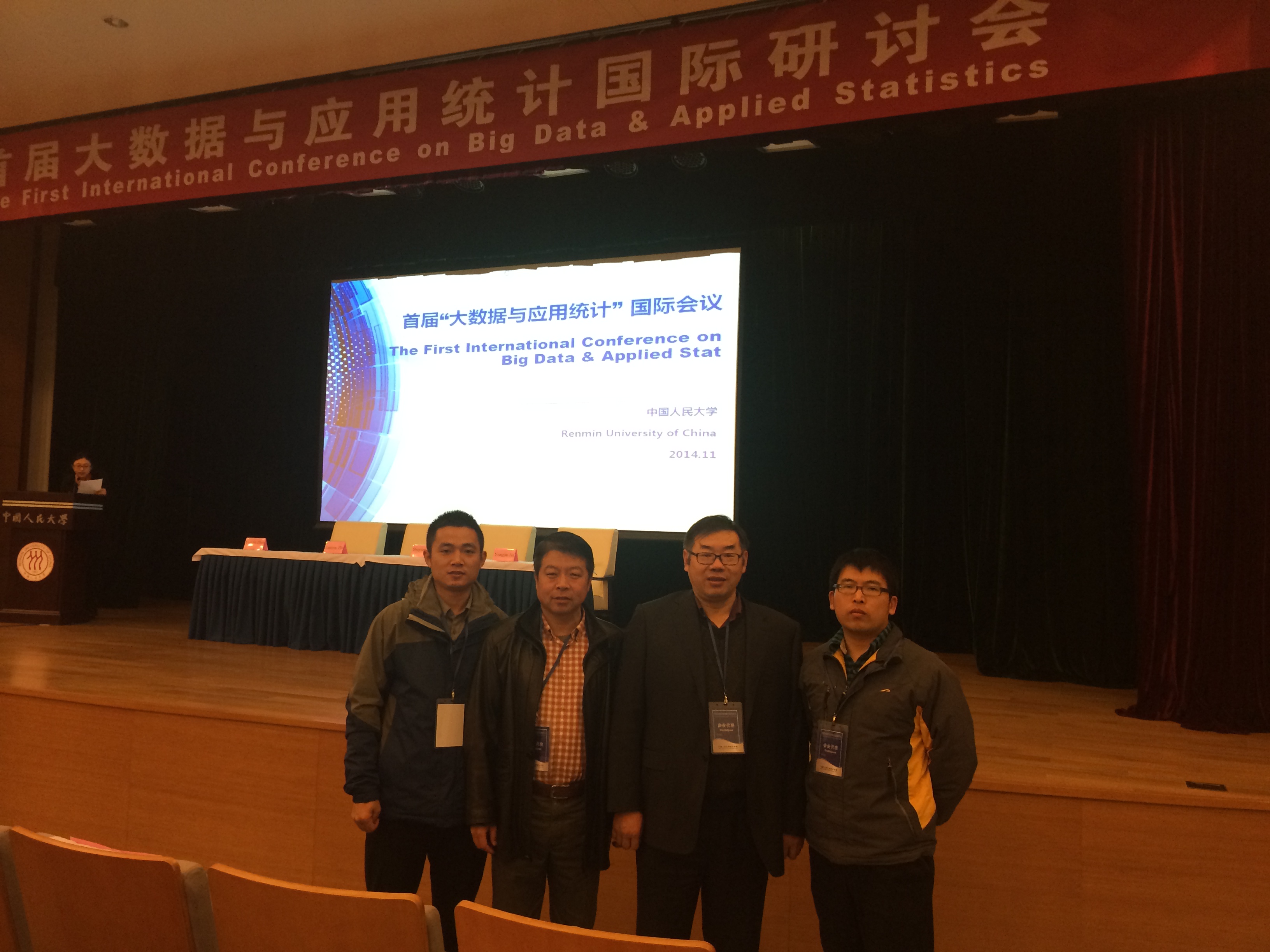 2014年11月28日至30日,首届“大数据与应用统计” 国际会议在中国人民大学召开,qmh官网副院长(主持工作)陈耀辉教授、统计学一级学科带头人李刚教授、统计系副主任韩中博士、统计系周朋朋博士等一行四人应邀出席。此次会议由教育部人文社科重点研究基地中国人民大学应用统计科学研究中心、中国人民大学统计学院、兰州商学院统计学院、中国科学院数学与系统科学研究院、北京大学光华管理学院和首都师范大学数学科学学院承办,会议组委会邀请了来自哈佛大学、耶鲁大学、普林斯顿大学、中国人民大学等国内外知名学府的多名统计领域的专家参加此次会议,参会总人数400余人。