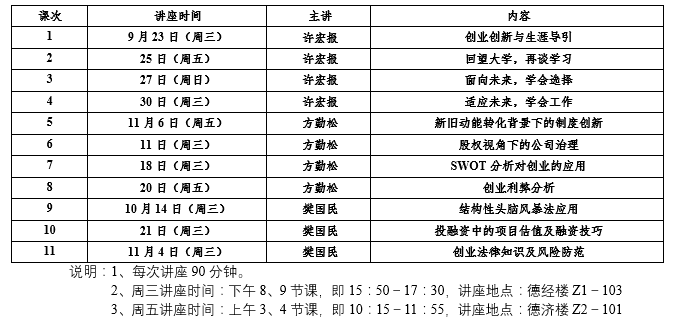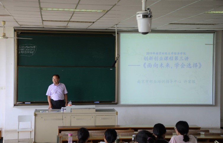 许宏报老师首先在2020年9月份进行了四次系列讲座,他结合自己长期以来人力资源培训、大学生创业典型案例以及南京市相关政策规定,进行了深入浅出、饶有趣味的讲解, 激发了大家浓烈的学习兴趣,每次讲座都让同学们有新的收获。