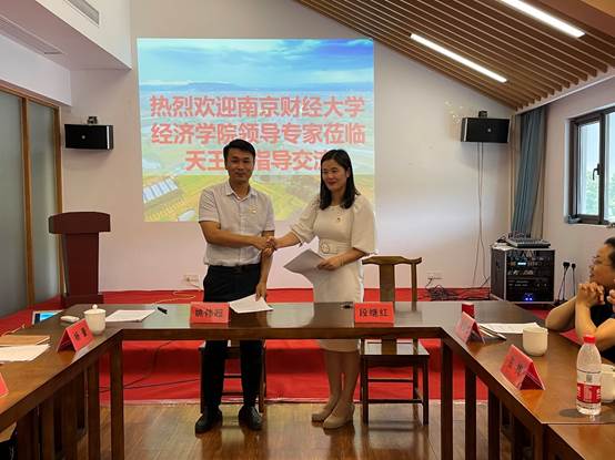 接着,地方政府官员和与会专家们进行了自由交流,戴庄村党委姚伟超书记向专家们介绍了戴庄村如何通过党委领导下的合作社引领绿色发展、重点发展生态农业、坚持城乡融合发展而实现乡村振兴的成功经验。戴庄村党支部和球盟会qmh网址经济系教工党支部就合作共建内容进行了热烈讨论,达成一致后,经济系教工党支部段继红书记代表支部和戴庄村党委姚伟超书记进行了党支部共建协议签约仪式。学院党委袁怡琨副书记代表球盟会qmh网址与戴庄村姚伟超书记签署了大学生社会实践基地协议书。