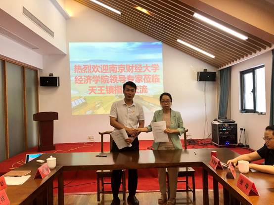 交流会上,党员同志们一起观看了天王镇宣传片,对天王镇的产业发展情况有了一个直观的了解。天王镇范镇长向与会领导和专家们详细介绍了天王镇的特色产业发展情况、乡村振兴取得的成效以及目前天王镇金融支持乡村振兴领域存在的问题,希望能够通过支部共建,深化校地合作,为天王镇全面实施乡村振兴注入更多金融动力,探索出金融支持乡村振兴的天王样板,为句容建设“一福地四名城”贡献天王力量。
