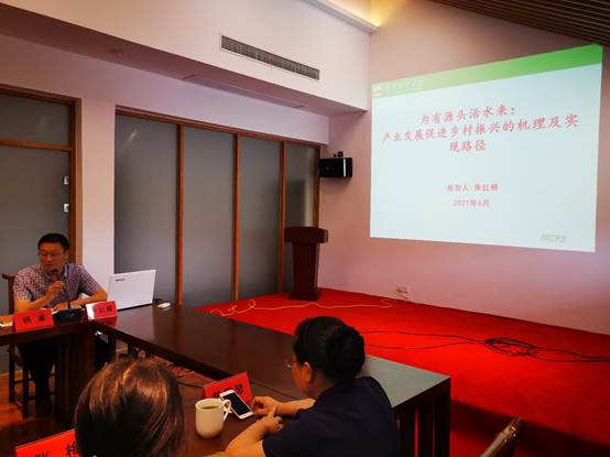 学院院长朱红根围绕乡村振兴、农业发展和农民增收作了“为有源头活水来:产业发展促进乡村振兴的机理及实现路径”的主题发言。朱院长从理论高度深入阐述了产业发展促进乡村振兴的作用机理,并从建设中国特色的“一村一品”产业链;发挥乡村功能价值,丰富乡村产业发展新业态;延伸加工链条,拓展产业增值增效新空间;构建乡村产业品牌体系;培育经营主体,构建乡村产业发展新雁阵;推进创业创新,培育乡村产业发展新动能;发展乡村产业必须贯彻落实绿色发展理念,要将生态和绿色铸造为产业发展的基因和灵魂;强化联农带农,形成乡村产业融合发展新优势;推进城乡融合发展等9个方面详细分析了产业发展促进乡村振兴的实现路径。